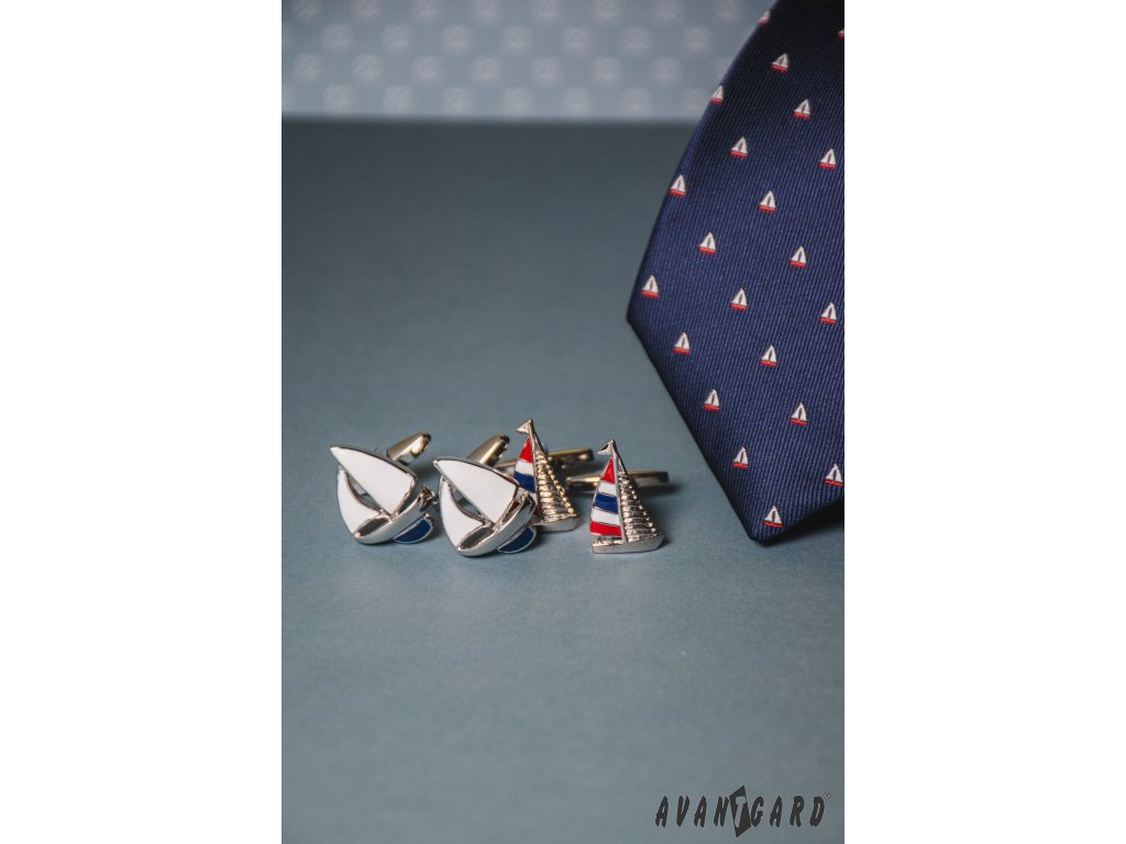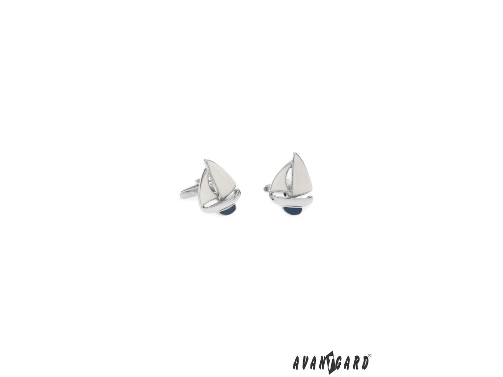 Stříbrné manžetové knoflíčky ve tvaru plachetnice jsou výrobek české značky Avantgard.