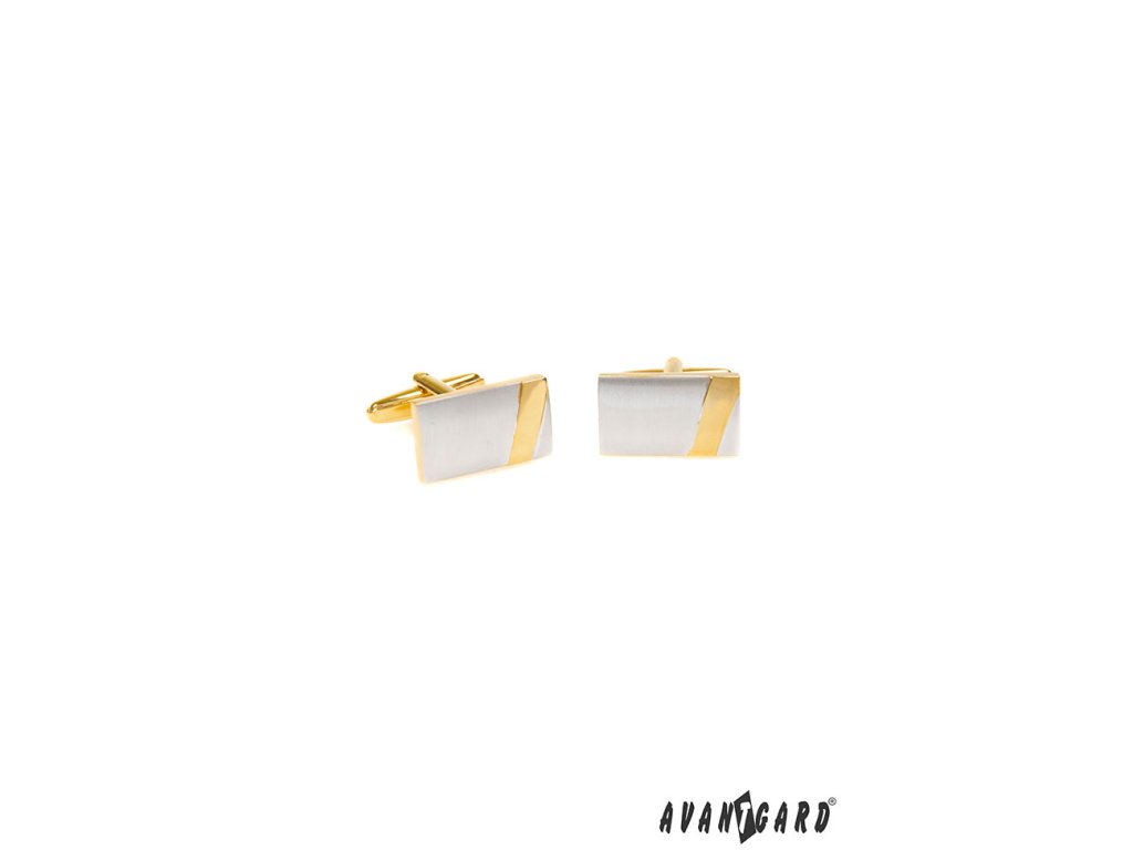Zlaté obdélníkové manžetové knoflíčky se stříbrným detailem jsou výrobek české značky Avantgard.