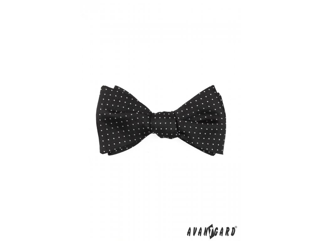 Černý vázací motýlek s bílými tečkami má, po uvázání, velikost cca 12 cm.