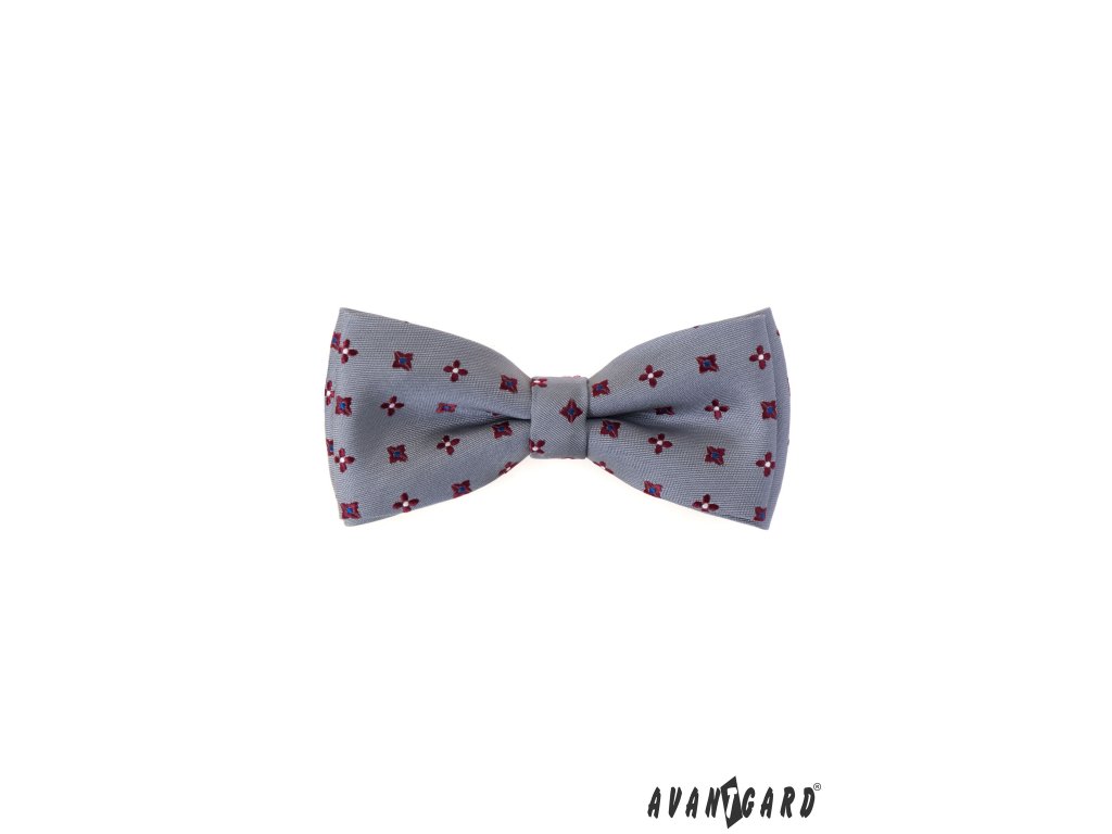 Šedý motýlek s bordó vzorem + kapesníček do saka