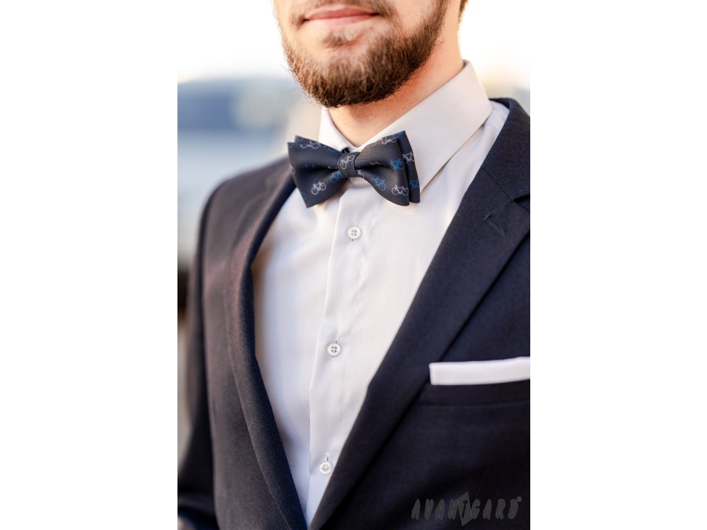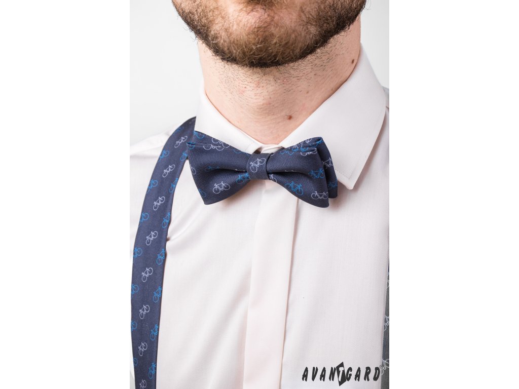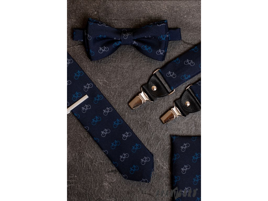 Tmavě modrý pánský motýlek se vzorem – Kola + kapesníček do saka