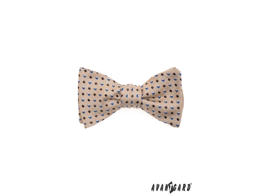 Béžový vázací motýlek s modrým vzorem je výrobek české značky Avantgard.