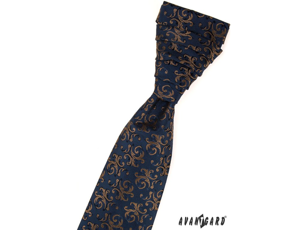 Velmi tmavě modrá pánská regata se zlatým vzorem + kapesníček do saka