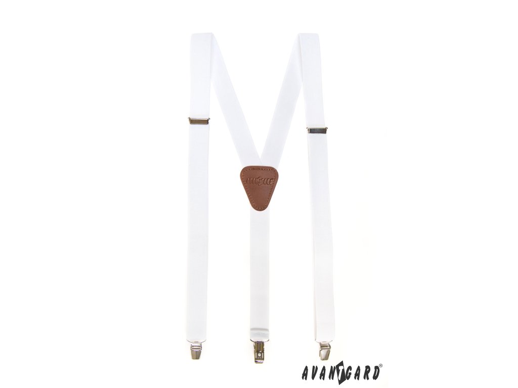 Bílé šle s tmavě hnědým středem mají uchycení na klipy.