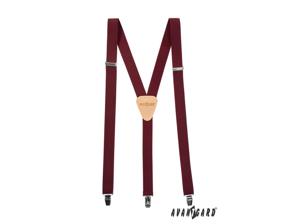 Bordó šle s béžovým středem mají celokožený středový díl a závěsy na klipy.