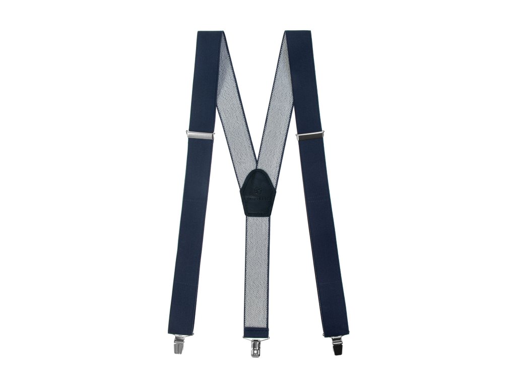 Tmavě modré šle s tmavě modrým středem mají uchycení na klipy.
