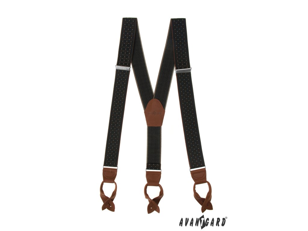 Černé pánské kšandy s tmavě hnědým středem a koženými poutky