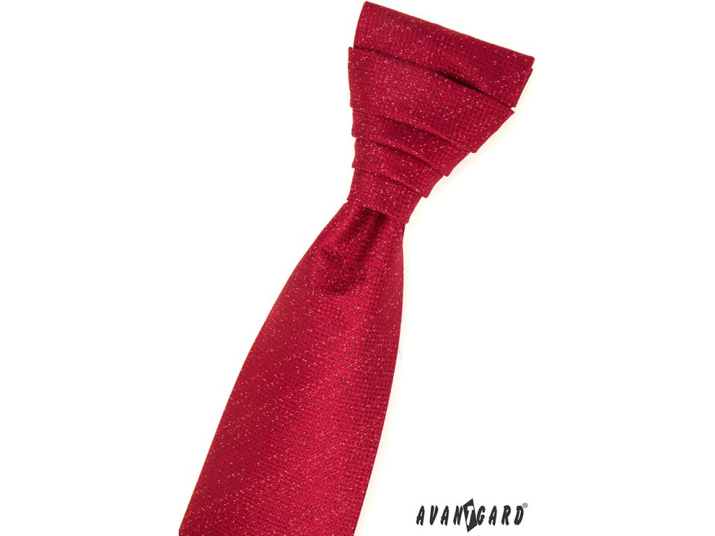 Červená pánská regata se třpytivým detailem je druh pánské kravaty, která má předvázaný ozdobný uzel.