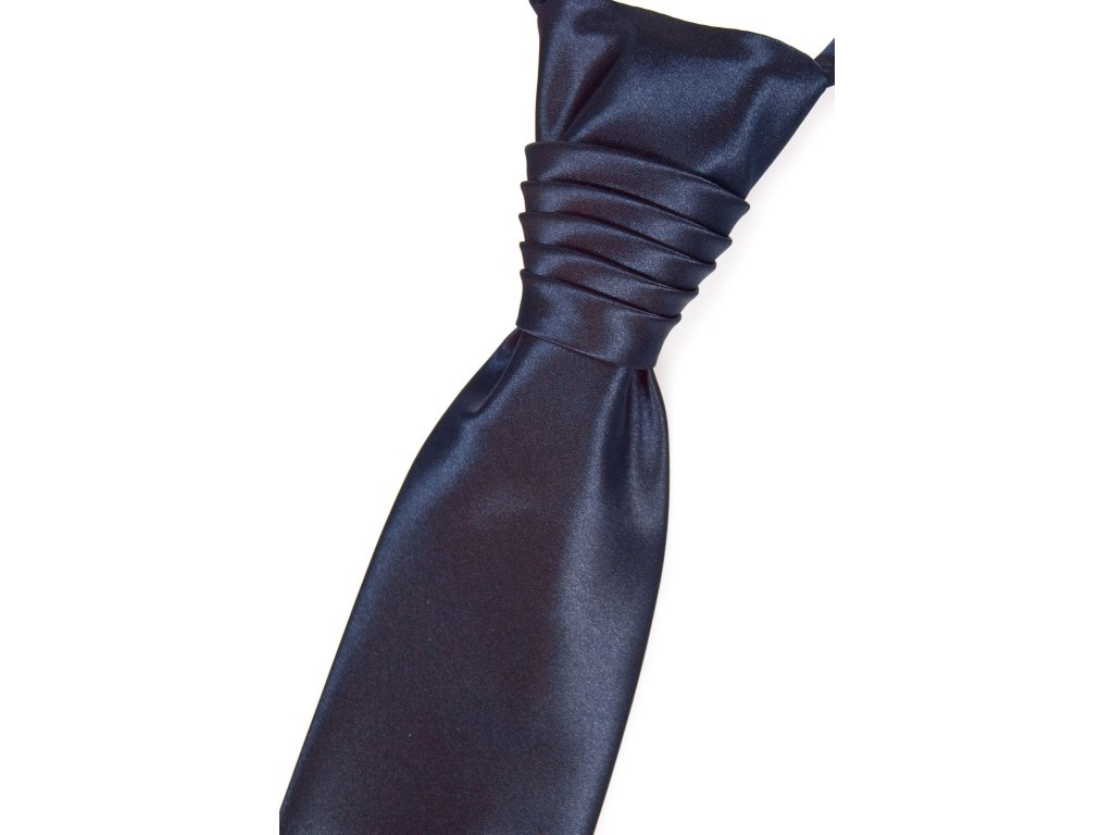 Navy modrá jednobarevná pánská regata je druh pánské kravaty, která má předvázaný ozdobný uzel.
