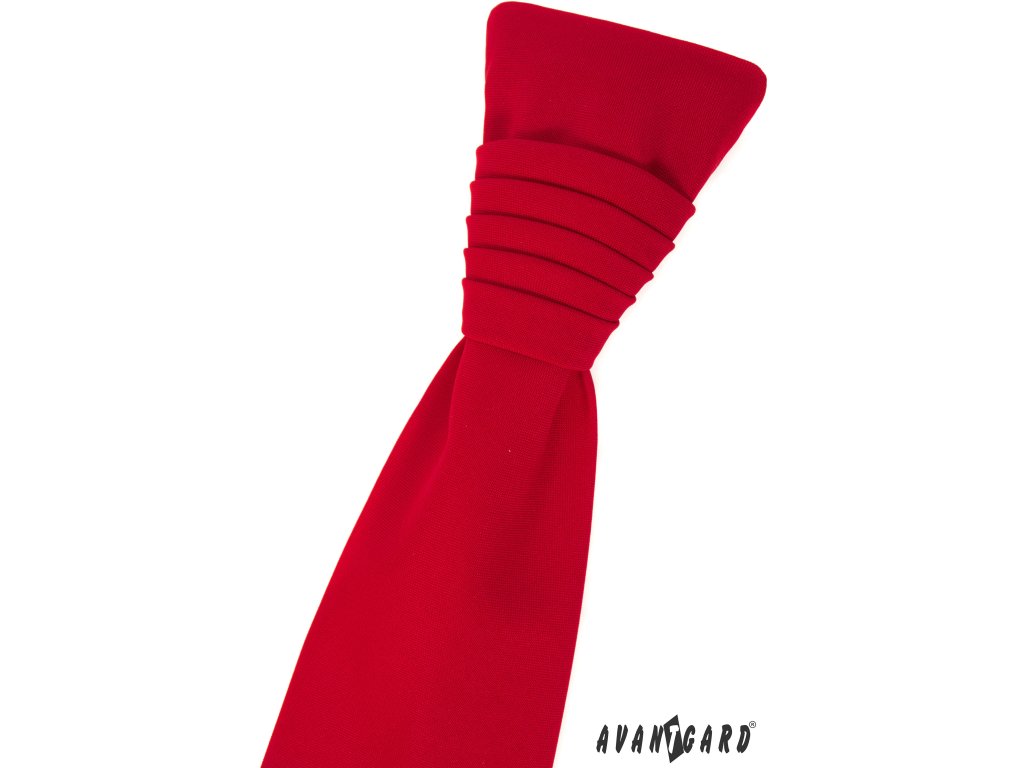 Sytě červená pánská regata je druh pánské kravaty, která má předvázaný ozdobný uzel.