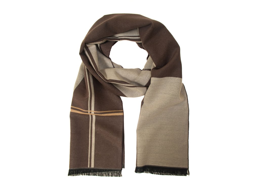 Hnědá pánská šála s béžovými detaily