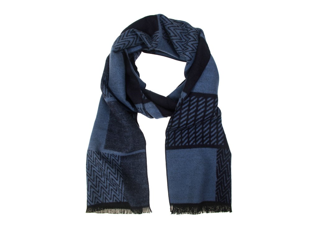 Modrá pánská šála s tmavým vzorem