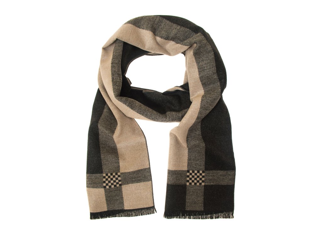 Šedá pánská šála se světle béžovým vzorem je vyrobena ze 100% viskózy.