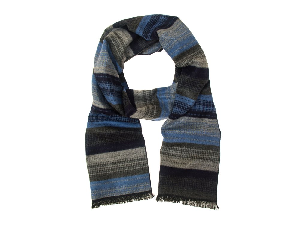 Šedá pánská šála se světle modrým vzorem je vyrobena ze 100% viskózy.