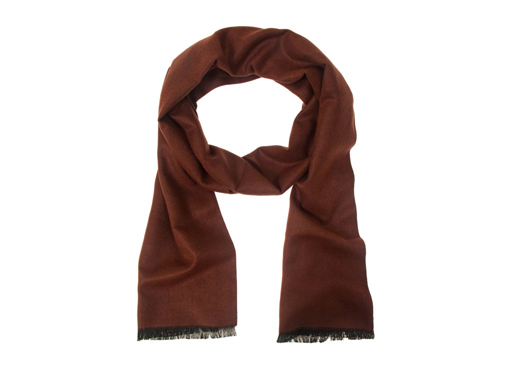 Skořicově hnědá pánská šála s třásněmi je vyrobena ze 100% viskózy.