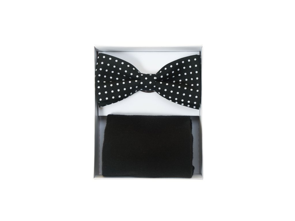 Černá dárková sada pánský motýlek s puntíky + pánské ponožky