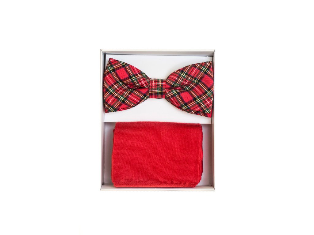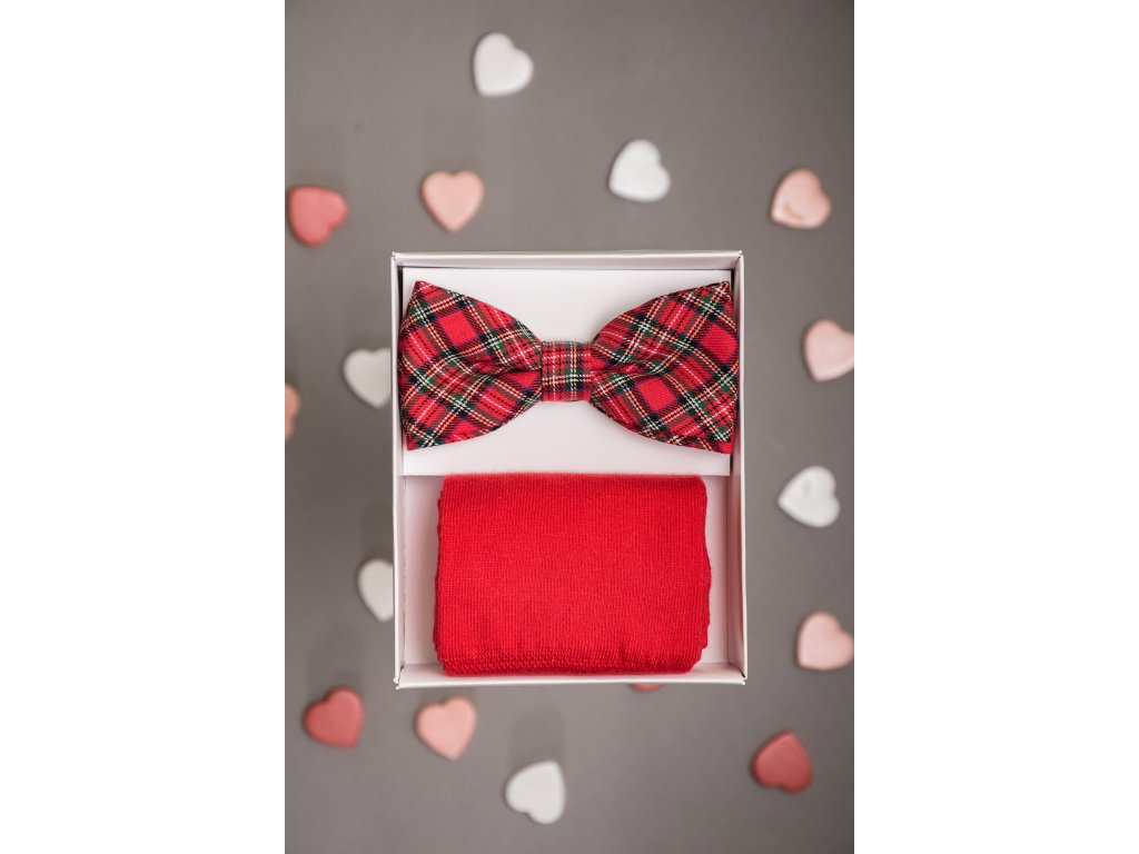 Červená károvaná dárková sada pánský motýlek + pánské ponožky