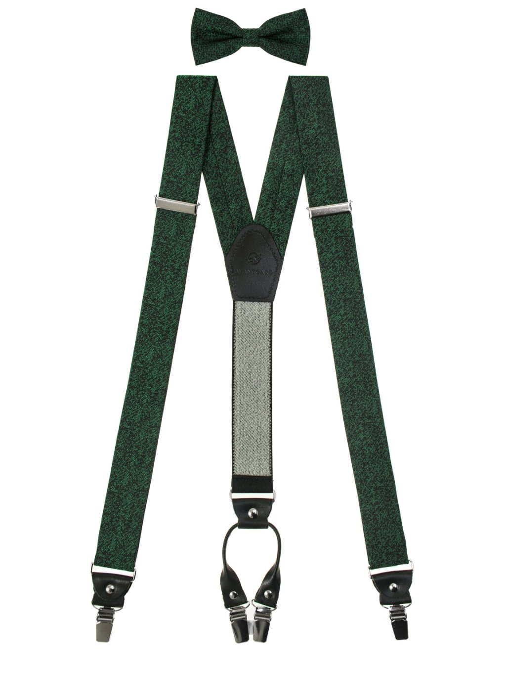 Smaragdově zelená pánská sada obsahuje pánské kšandy/šle, pánský motýlek a kapesníček do saka.