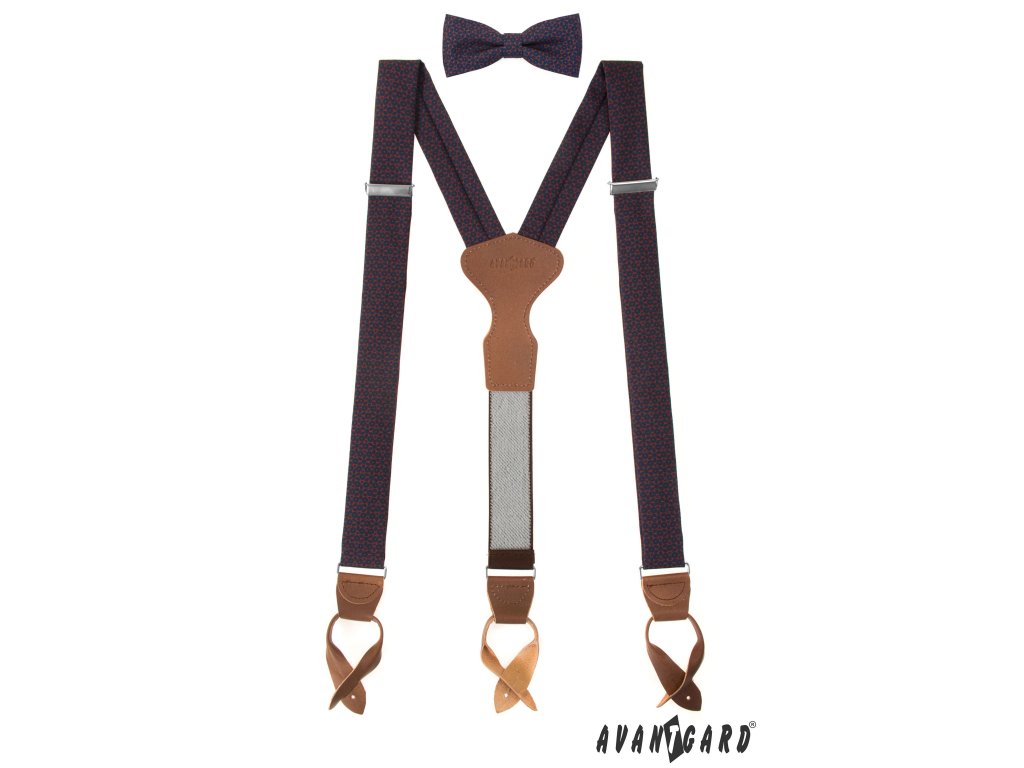 Tmavě modrá pánská sada s jemným vzorkem - hnědý střed - šle na poutka