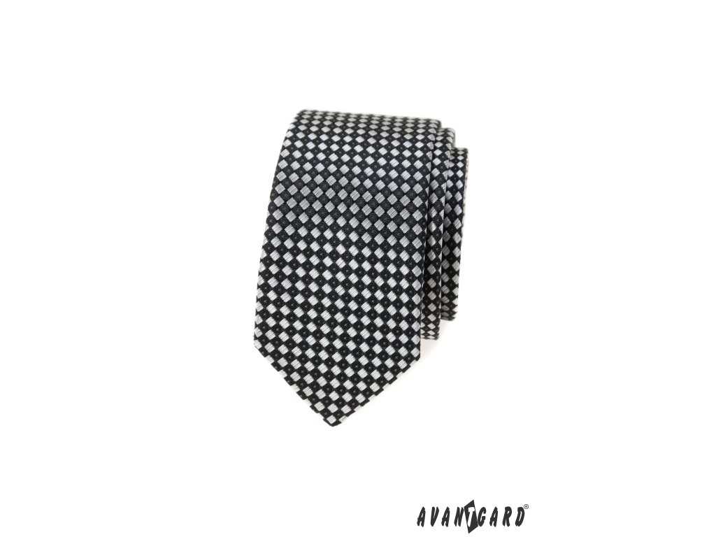 Černobílá pánská slim kravata se vzorem šachovnice je 5 cm široká a je vyrobena ze 100% polyesteru.