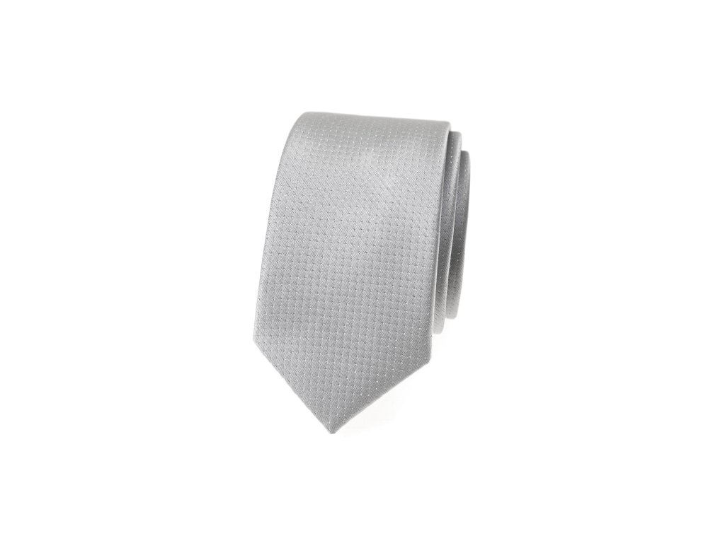 Světle šedá luxusní pánská slim kravata se stříbrnými detaily