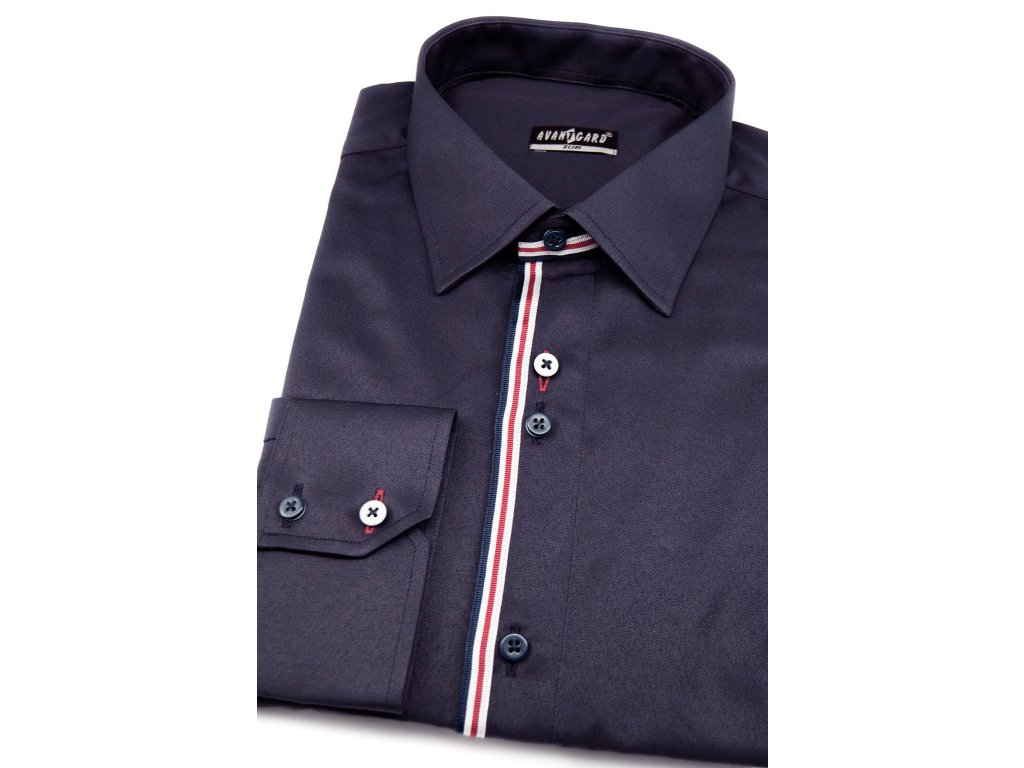 Pánská tmavě modrá luxusní košile s pruhy střihu SLIM FIT má dlouhý rukáv a je vyrobena z materiálu, který je velmi příjemný a pohodlný. Košili zdobí tzv. piccolo límeček. Jedná se o český výrobek značky Avantgard.