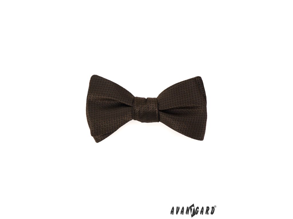 Tmavě hnědý vázací motýlek se vzorem má, po uvázání, velikost cca 12 cm.