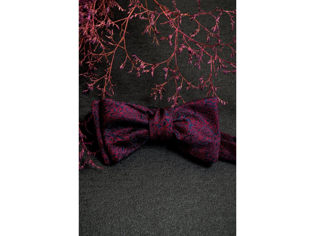 Vínový vázací pánský motýlek se vzorem má, po uvázání, velikost cca 12 cm.