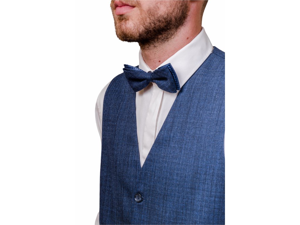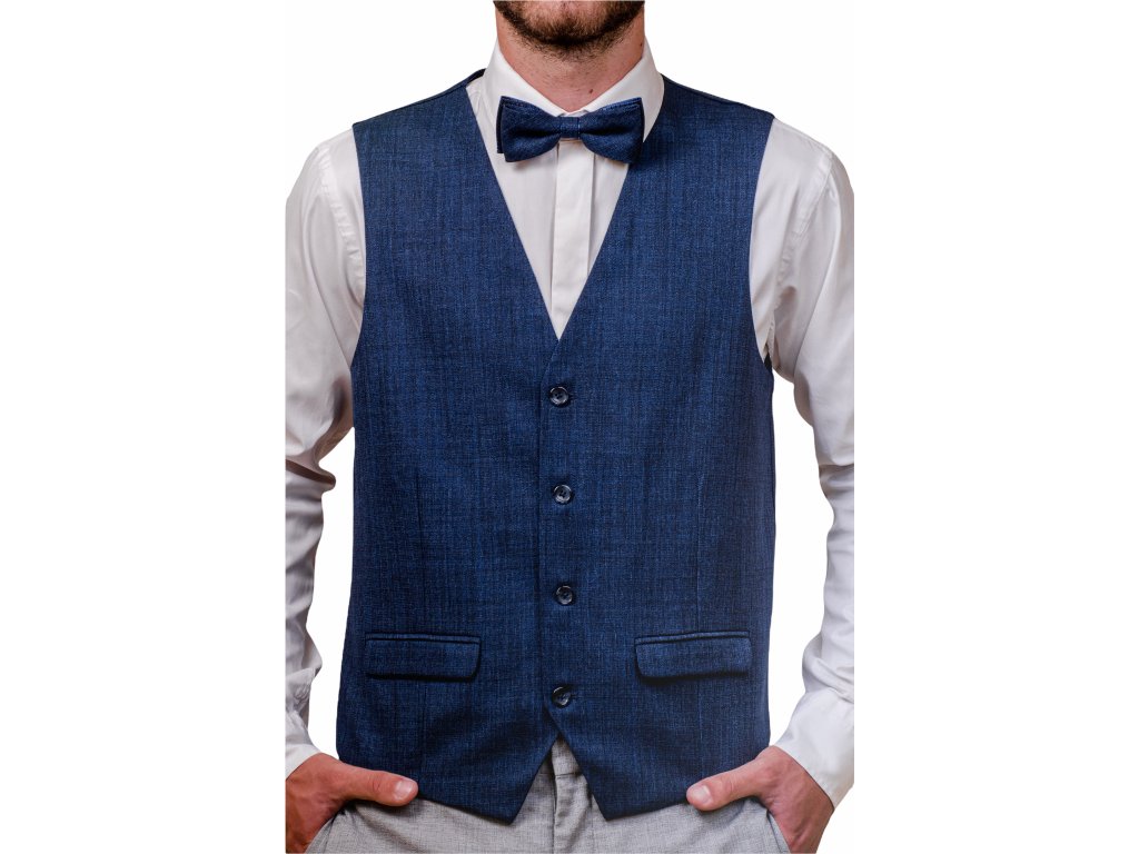 Modrá žíhaná pánská vesta + motýlek + kapesníček do saka