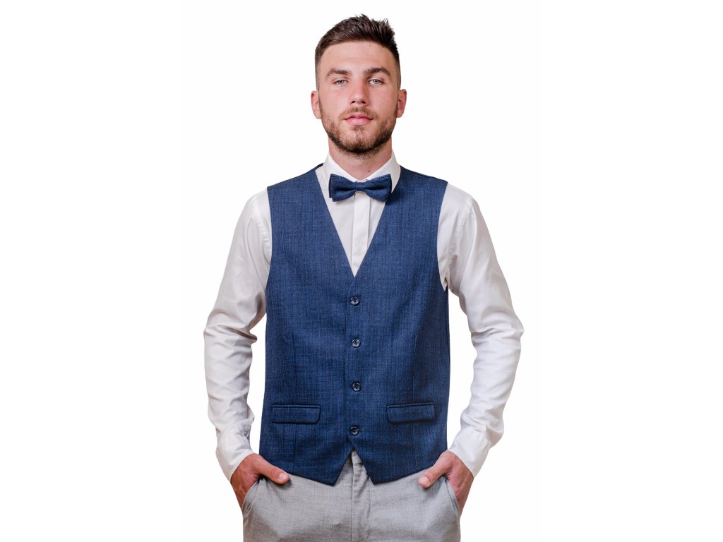 Modrá žíhaná pánská vesta je elegantní pánský doplněk, který oživí vzhled každého muže.